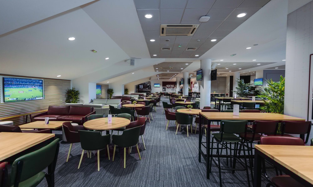 Located in the North Stand, Beaumont is a newly refurbished suite with its own dedicated entrance, combining natural daylight with stylish recessed lighting. The space is highly versatile, perfect as a blank canvas for product launches, creative events, or branded experiences. It now features fun additions including darts boards, arcade machines, a shuffleboard, and a self-serve drinks wall, making it ideal for both engaging and memorable events.
